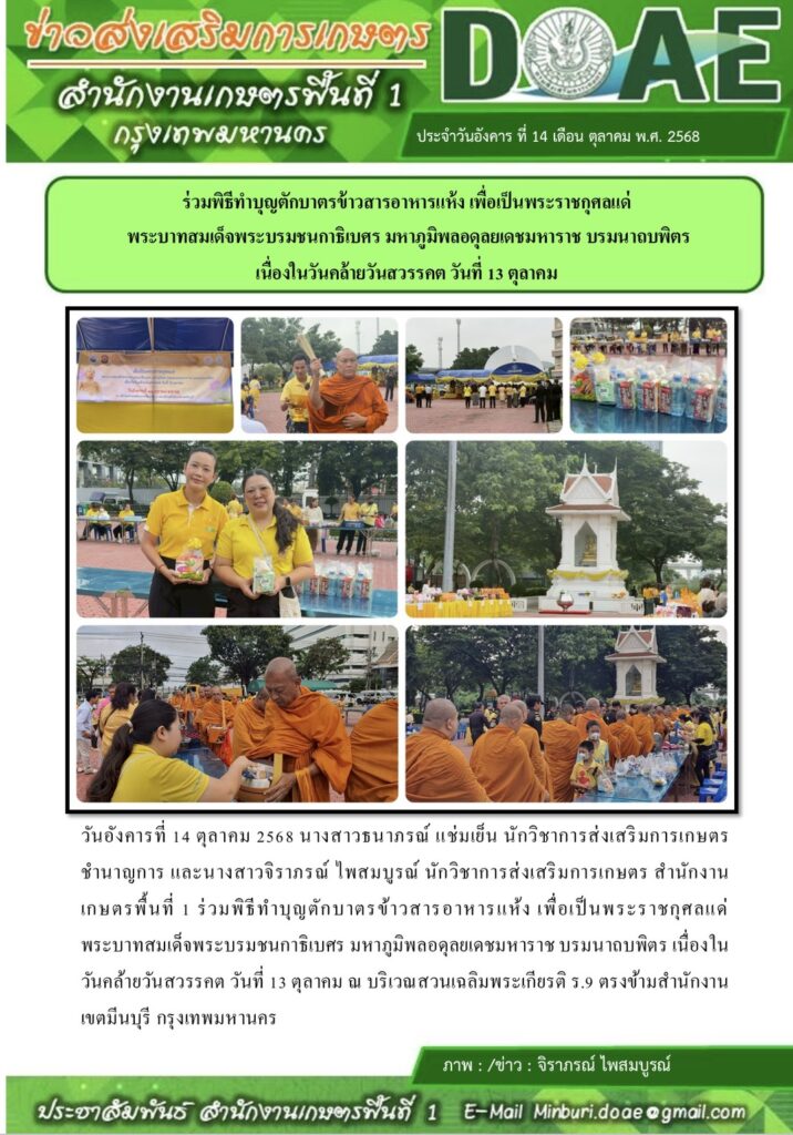 ร่วมพิธีทำบุญตักบาตรข้าวสารอาหารแห้ง เพื่อเป็นพระราชกุศลแด่ พระบาทสมเด็จพระบรมชนกาธิเบศร มหาภูมิพลอดุลยเดชมหาราช บรมนาถบพิตร เนื่องในวันคล้ายวันสวรรคต วันที่ 13 ตุลาคมBy bkk1_admin / 14 ตุลาคม 2025