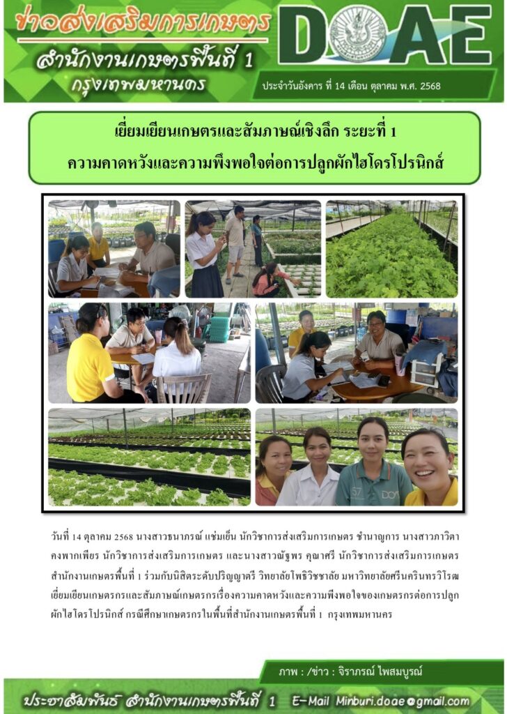 เยี่ยมเยียนเกษตรและสัมภาษณ์เชิงลึก ระยะที่ 1 ความคาดหวังและความพึงพอใจต่อการปลูกผักไฮโดรโปรนิคBy bkk1_admin / 14 ตุลาคม 2025