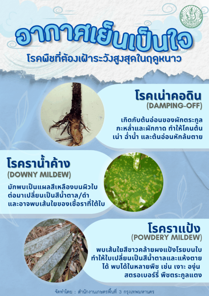 คลังความรู้/ข้อมูลเผยแพร่อากาศเย็นเป็นใจ โรคพืชที่ต้องเฝ้าระวังสูงสุดในฤดูหนาว bkk3_admin / 10 พฤศจิกายน 2025